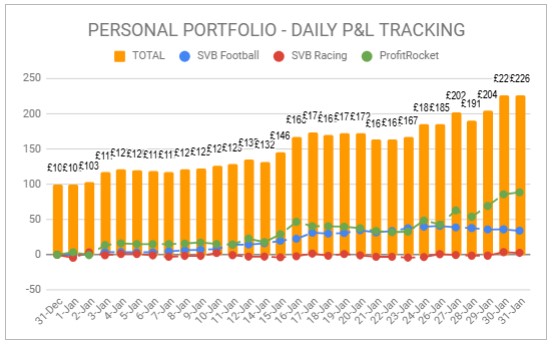 Starting on Jan 1st with a betting bank of £100 (see notes below).